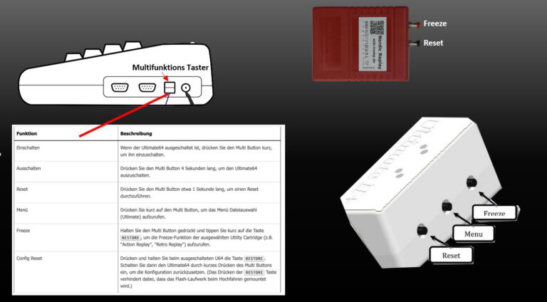 Wichtige Tastaturfunktionen der Retro Replay / Action Replay: