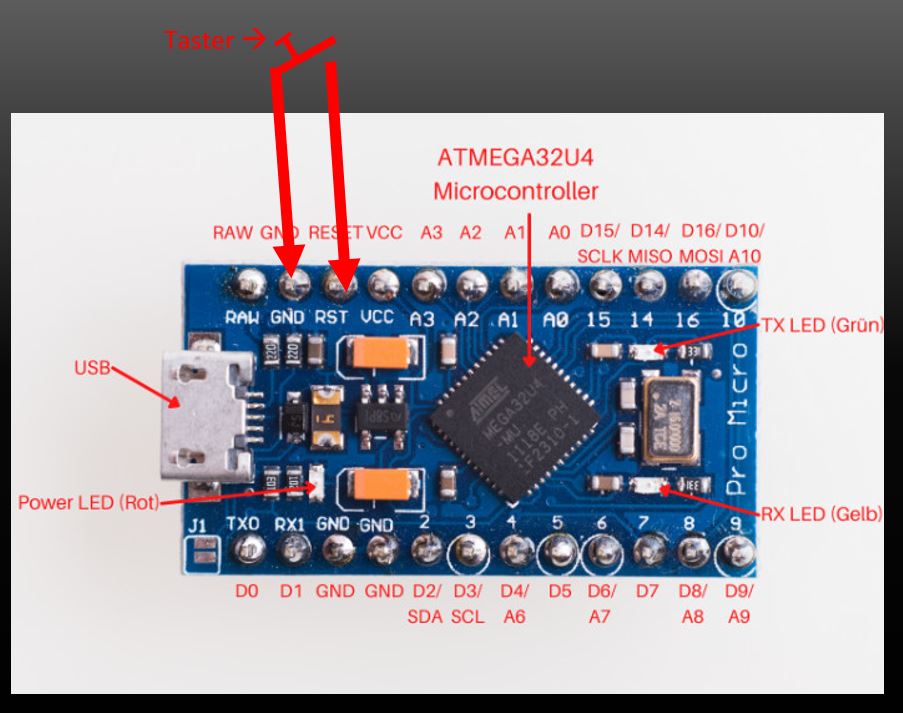 Setzen Sie den Arduino Pro Micro zurück, indem Sie zweimal die Reset-Taste drücken .