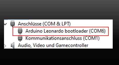 Arduino Leonardo bootloader (COM6) im Geräte-Manager angezeigt